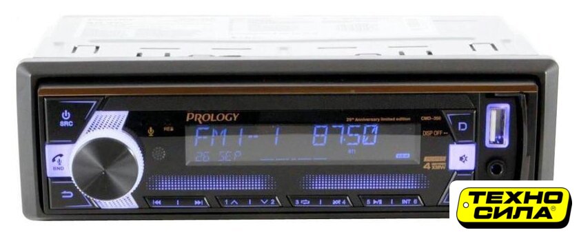 1DIN, USB-проигрыватель, USB, карты памяти, Bluetooth, усилитель 4x50 Вт, экран монохромный