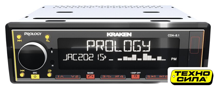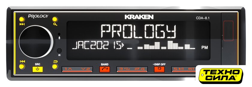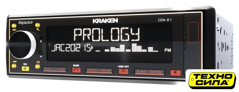1DIN, USB-проигрыватель, USB, Bluetooth, усилитель 8x65 Вт, экран монохромный, пульт