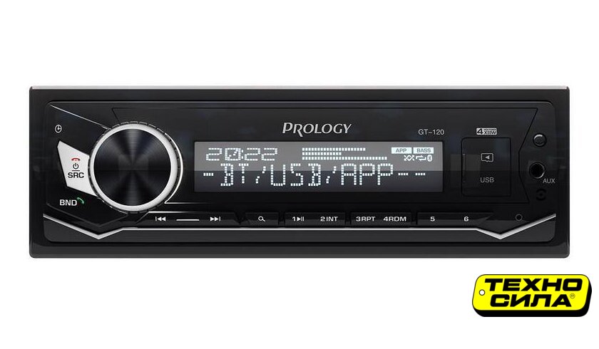 1DIN, USB-проигрыватель, USB, Bluetooth, усилитель 4x55 Вт, экран монохромный, пульт