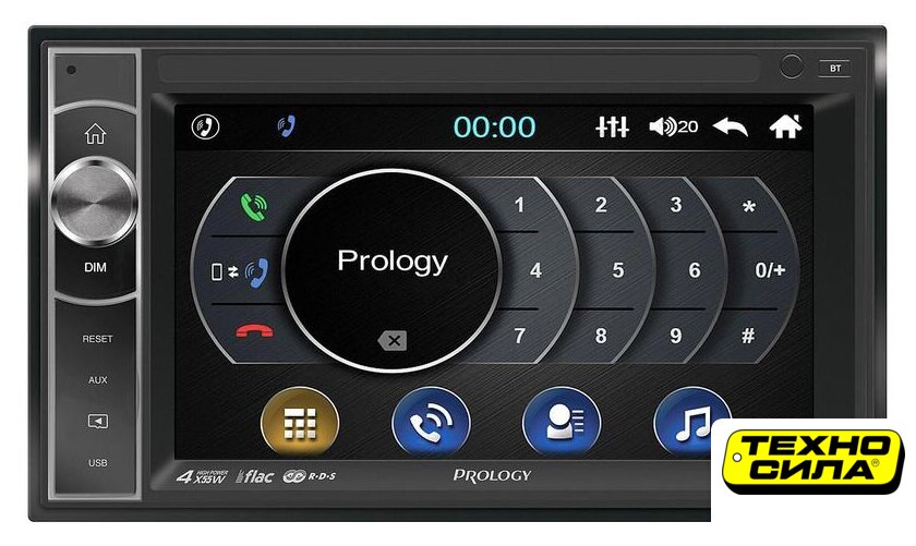 2DIN, USB-проигрыватель, USB, Bluetooth, усилитель 4x55 Вт, экран монохромный, пульт