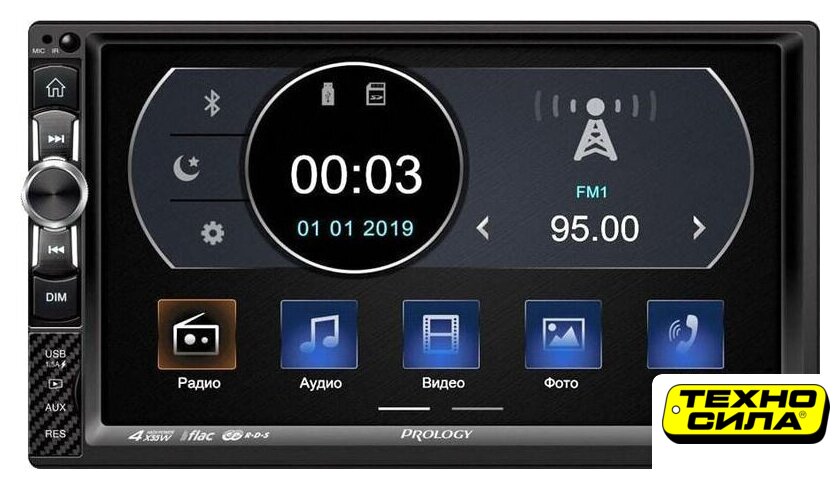 2DIN, USB-проигрыватель, USB, Bluetooth, усилитель 4x55 Вт, экран монохромный, пульт