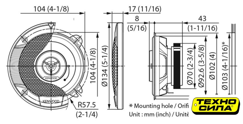 коаксиальная АС, 68–22000 Гц, 91 дБ, 4 Ом