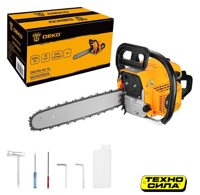 бензиновая, полупрофессиональная, 2.3 кВт, 45 см³, шаг цепи 0.325 дюйма, длина шины 45 см, антивибрация, 6.4 кг