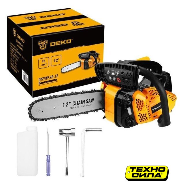 Комплект поставки | - Основной корпус - 1 шт.- Шина - 1 шт.- Цепь - 1 шт.- Защитный щиток - 1 шт.- Зубчатый упор (гребенка) - 1 шт.- Емкость для топливной смеси - 1 шт.- Комбинированный ключ - 1 шт.- Шестигранный ключ - 1 шт.- Отвертка - 1 шт.- Винт - 2 шт.- Руководство по эксплуатации- Коробка |