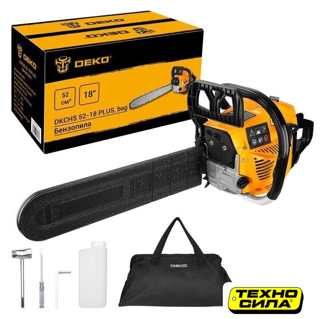 Комплект поставки | - Основной корпус - 1 шт.- Шина - 1 шт.- Цепь - 1 шт.- Защитный щиток - 1 шт.- Зубчатый упор (гребенка) - 1 шт.- Емкость для топливной смеси - 1 шт.- Комбинированный ключ - 1 шт.- Шестигранный ключ - 1 шт.- Отвертка - 1 шт.- Винт - 2 шт.- Сумка - 1 шт.- Руководство по эксплуатации- Коробка |