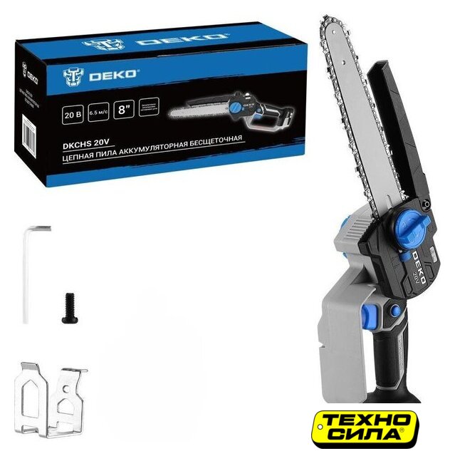 аккумуляторная, бытовая, 20 В, шаг цепи: 1/4 дюйма, длина шины: 15 см, без аккумулятора в комплекте, быстрое натяжение цепи, 1.9 кг
