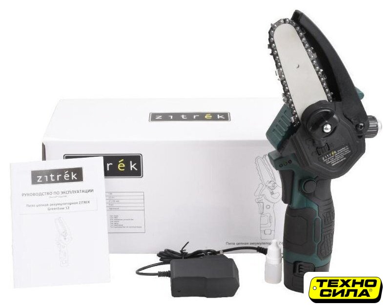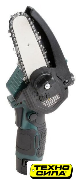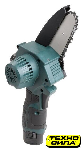 аккумуляторная, бытовая, 12 В, шаг цепи: 1/4 дюйма, длина шины: 10 см, аккумулятор в комплекте, быстрое натяжение цепи, 1 кг