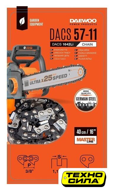 шаг цепи 3/8", 57 звеньев, длина шины 40 см (16"), совместимость: Huter BS-40, BS-45M, ELS2000