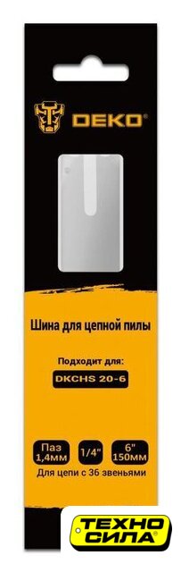металл, шаг цепи 1/4", 36 звеньев, длина шины 15 см (6"), толщина 1.4 мм, совместимость: Deko DKCHS 20-6