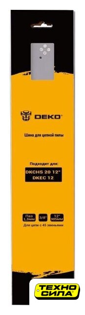 металл, шаг цепи 1/4", 46 звеньев, длина шины 20 см (8"), совместимость: Deko DKCHS 20V