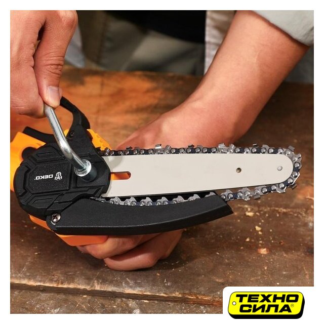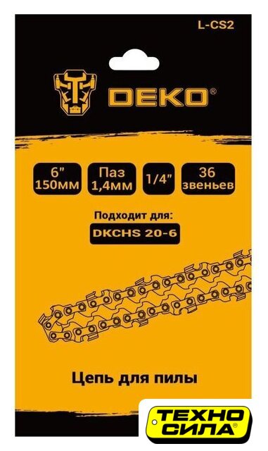 металл, шаг цепи 1/4", 36 звеньев, длина шины 15 см (6"), толщина 1.4 мм, совместимость: Deko DKCHS 20-6