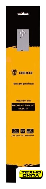 металл, шаг цепи 3/8", 52 звена, длина шины 35.5 см (14"), совместимость: Deko DKEC14/Deko DKCHS 40 PRO 14"