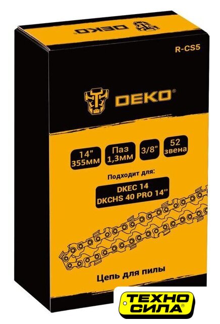 металл, шаг цепи 3/8", 59 звеньев, длина шины 40.5 см (16"), совместимость: Deko DKEC16/Deko DKCHS 40 PRO 16"