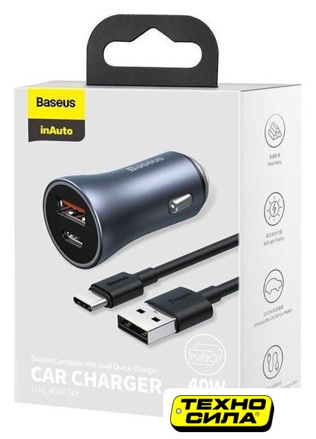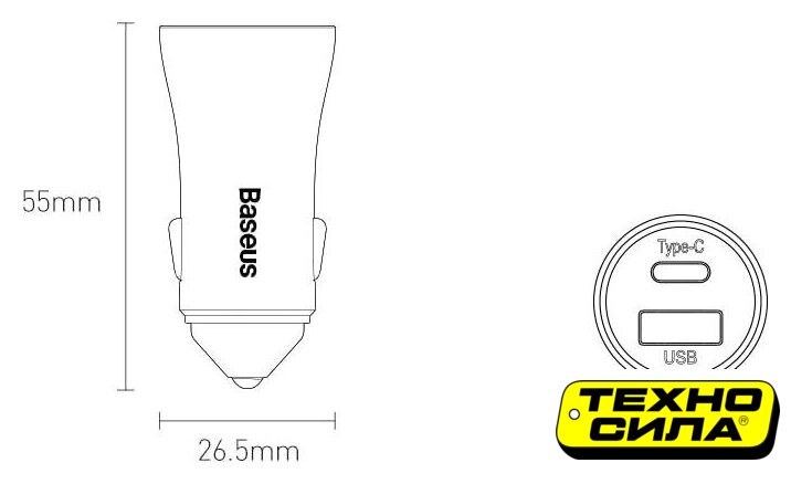 автомобильное зарядное для телефонов/для планшетов, разъем подключения USB Type-C/отсутствует (нужен кабель), выходная мощность 36 Вт, быстрая зарядка