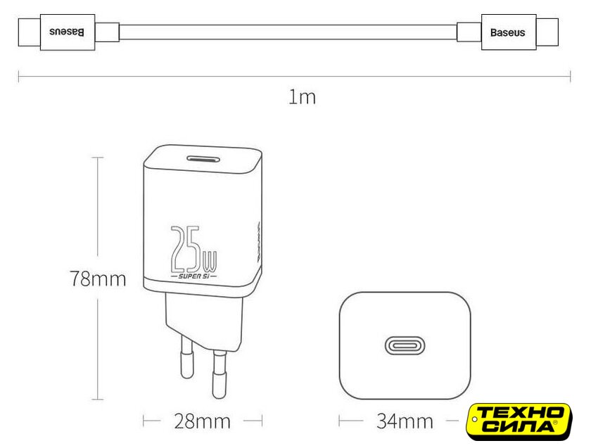 сетевое зарядное для телефонов/для планшетов, разъем подключения USB Type-C, выходная мощность 20 Вт, быстрая зарядка, Power Delivery, кабель 1 м