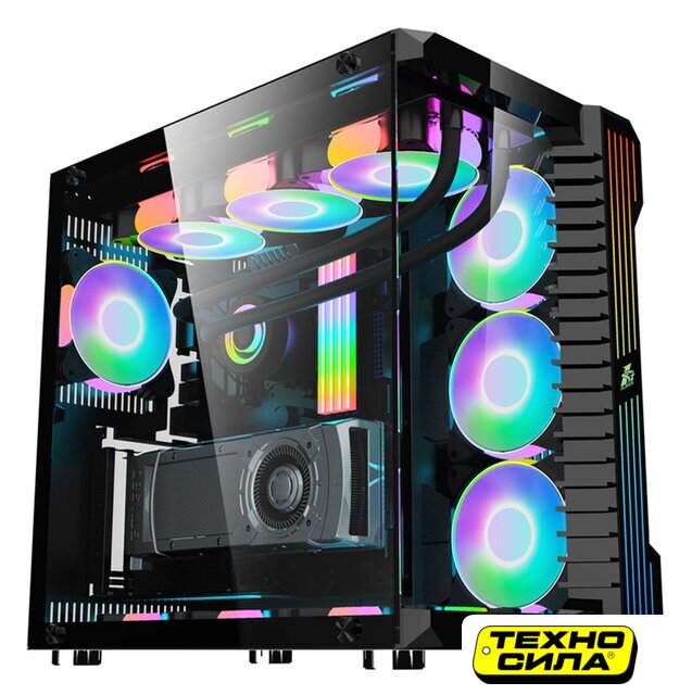 Конфигурация вентиляторов | спереди: 3х120 мм, наверху: 3х120 мм, внизу: 3х120 мм, сзади: 1х120 мм |