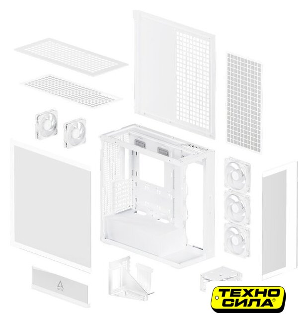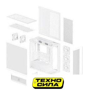 Mid Tower, БП отсутствует, для плат ATX/micro-ATX/eATX/mini-ITX, в комплекте 3 вентилятора с контроллером вращения, окно: закаленное стекло, видеокарта до 430 мм, охлаждение ЦП до 185 мм, пылевые фильтры, 2xUSB-A 3.2 5Гбит/с, 1xUSB-C 3.2 10Гбит/с, цвет белый