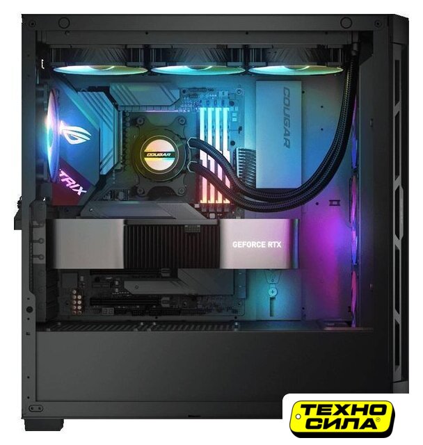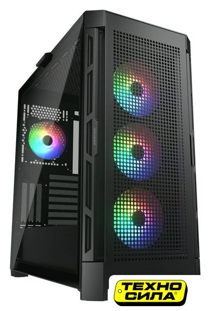 Mid Tower, БП отсутствует, для плат ATX/micro-ATX/eATX/mini-ITX, в комплекте 4 вентилятора, окно: закаленное стекло, видеокарта до 415 мм, охлаждение ЦП до 184 мм, 1xUSB-A 3.2 5Гбит/с, 1xUSB-C 3.2 10Гбит/с, цвет черный