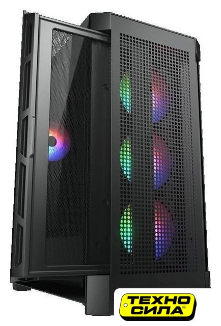 аквариум/Mini Tower, БП отсутствует, для плат micro-ATX/mini-ITX, в комплекте 3 вентилятора, окно: закаленное стекло, видеокарта до 420 мм, охлаждение ЦП до 173 мм, пылевые фильтры, 1xUSB-A 3.2 5Гбит/с, 1xUSB-C 3.2 5Гбит/с, цвет черный