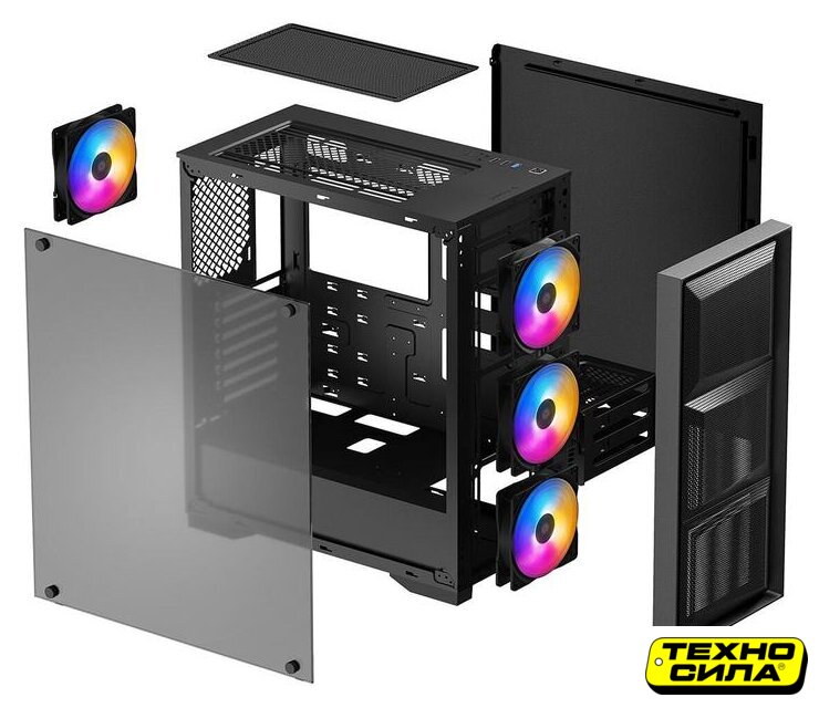 Mid Tower, БП отсутствует, для плат ATX/micro-ATX/mini-ITX, в комплекте 6 вентиляторов, видеокарта до 320 мм, охлаждение ЦП до 170 мм, пылевые фильтры, 1xUSB 2.0, 2xUSB-A 3.2 5Гбит/с, цвет черный