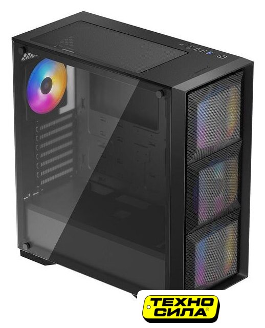 аквариум/Mini Tower, БП отсутствует, для плат micro-ATX/mini-ITX, в комплекте 3 вентилятора, окно: закаленное стекло, видеокарта до 330 мм, охлаждение ЦП до 157 мм, 2xUSB-A 3.2 5Гбит/с, цвет черный