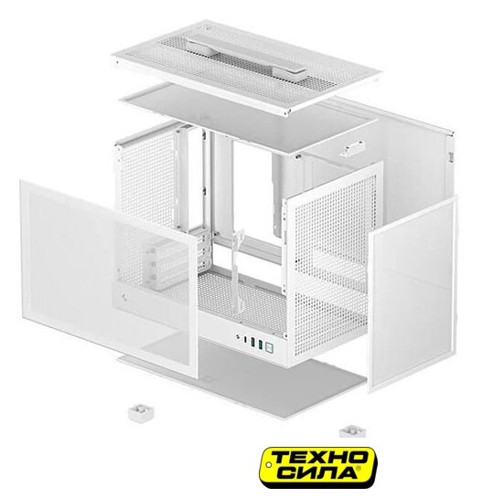 Mini Tower, БП отсутствует, для плат micro-ATX/mini-ITX, без вентиляторов в комплекте, окно: закаленное стекло, видеокарта до 330 мм, охлаждение ЦП до 157 мм, пылевые фильтры, 2xUSB 2.0, 1xUSB-A 3.2 5Гбит/с, цвет белый