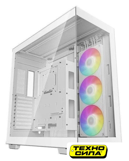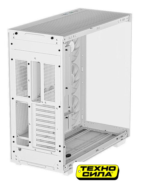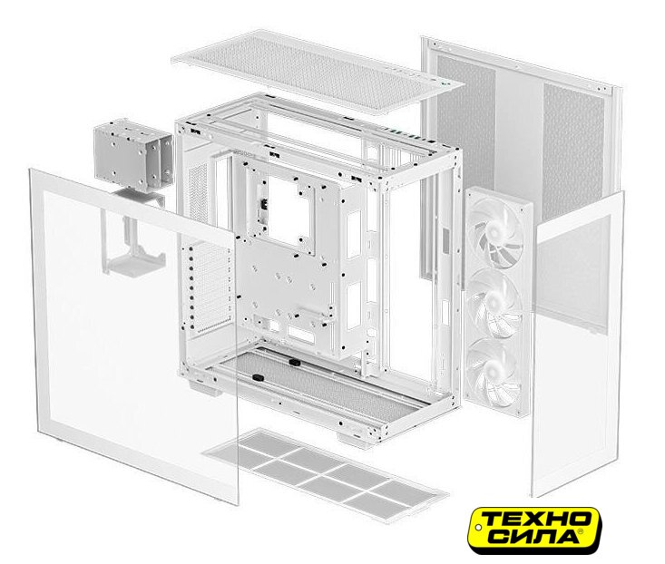 аквариум/Mid Tower, БП отсутствует, для плат ATX/micro-ATX/mini-ITX, в комплекте 4 вентилятора, окно: закаленное стекло, видеокарта до 435 мм, охлаждение ЦП до 178 мм, пылевые фильтры, 2xUSB-A 3.2 5Гбит/с, 1xUSB-C 3.2 5Гбит/с, цвет белый