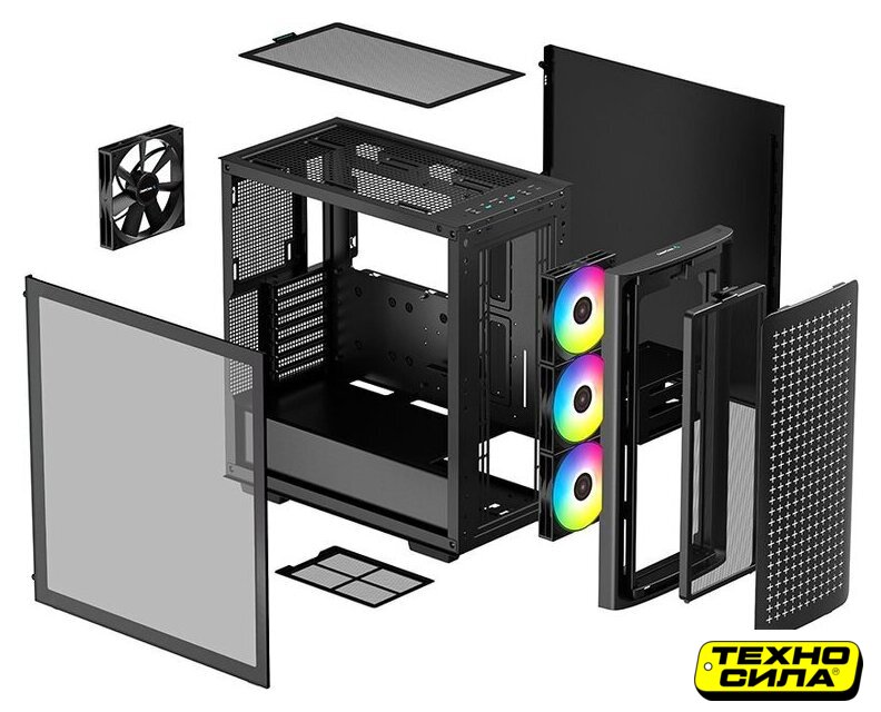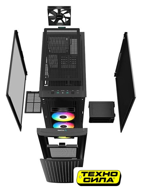 Mid Tower, БП отсутствует, для плат ATX/micro-ATX/eATX/mini-ITX, в комплекте 4 вентилятора, окно: закаленное стекло, видеокарта до 400 мм, охлаждение ЦП до 165 мм, пылевые фильтры, 2xUSB-A 3.2 5Гбит/с, цвет черный