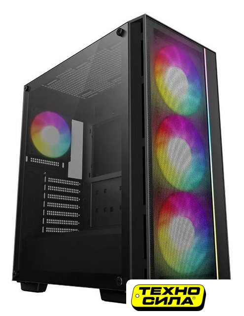 Mid Tower, блок питания отсутствует, для плат ATX/micro-ATX/mini-ITX, 3 вентилятора, 2xUSB 3.0, цвет черный