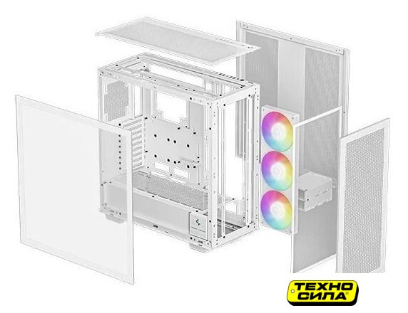 Mid Tower, БП отсутствует, для плат ATX/micro-ATX/mini-ITX, в комплекте 3 вентилятора, окно: закаленное стекло, видеокарта до 432 мм, пылевые фильтры, 2xUSB-A 3.2 5Гбит/с, 1xUSB-C 3.2 10Гбит/с, цвет белый
