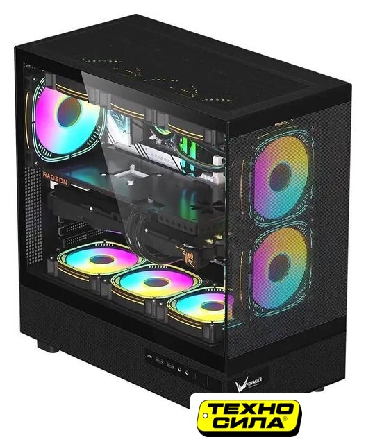Mini Tower, БП отсутствует, для плат micro-ATX/mini-ITX, в комплекте 4 вентилятора, окно: закаленное стекло, видеокарта до 375 мм, охлаждение ЦП до 163 мм, пылевые фильтры, 2xUSB 2.0, 1xUSB-A 3.2 5Гбит/с, цвет черный