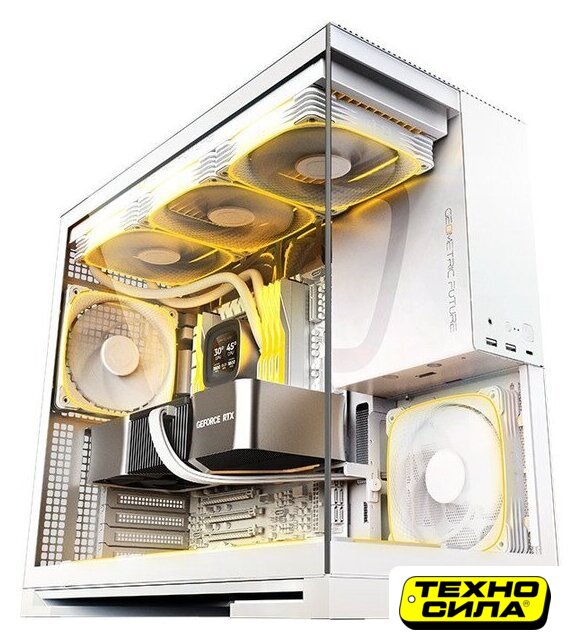 аквариум/Mid Tower, БП отсутствует, для плат ATX/micro-ATX/YTX, в комплекте 6 вентиляторов, окно: закаленное стекло, видеокарта до 400 мм, охлаждение ЦП до 175 мм, пылевые фильтры, 2xUSB-A 3.2 5Гбит/с, 1xUSB-C 3.2 10Гбит/с, цвет белый