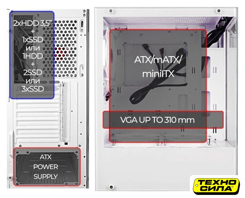 Совместимые материнские платы | ATX, micro-ATX, mini-ITX |