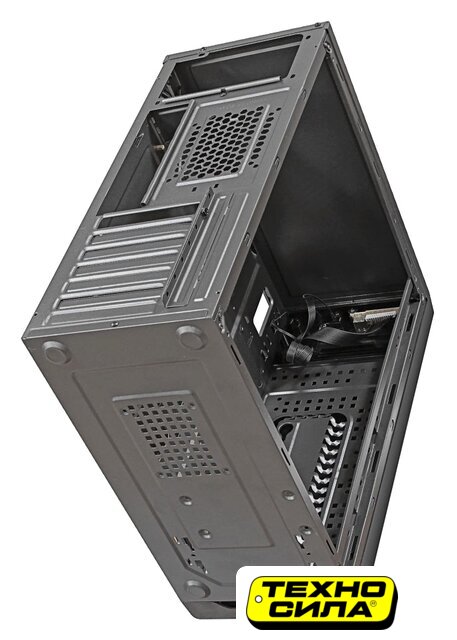 без блока питания, Tower, для плат ATX/micro-ATX, блок питания сверху, 0 вентиляторов, 2xUSB 2.0, цвет черный