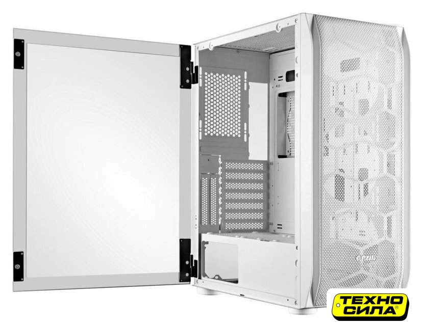 Mid Tower, блок питания отсутствует, для плат ATX/micro-ATX/mini-ITX, 0 вентиляторов, 2xUSB 2.0, 1xUSB 3.0, цвет белый
