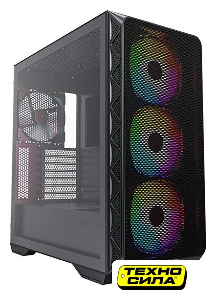 аквариум/Mid Tower, для плат ATX/micro-ATX/mini-ITX, окно: закаленное стекло, видеокарта до 410 мм, охлаждение ЦП до 165 мм, 2xUSB-A 3.2 5Гбит/с, 1xUSB-C 3.2 5Гбит/с, цвет черный