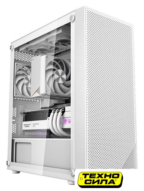 Mini Tower, БП отсутствует, для плат micro-ATX/mini-ITX, окно: закаленное стекло, видеокарта до 340 мм, охлаждение ЦП до 160 мм, пылевые фильтры, 2xUSB 2.0, 1xUSB-A 3.2 5Гбит/с, цвет белый