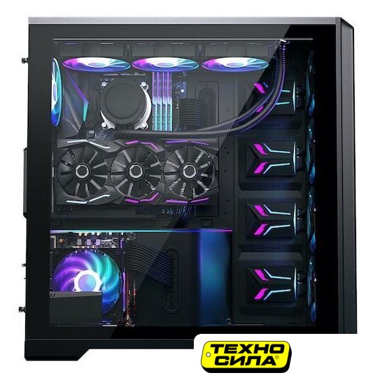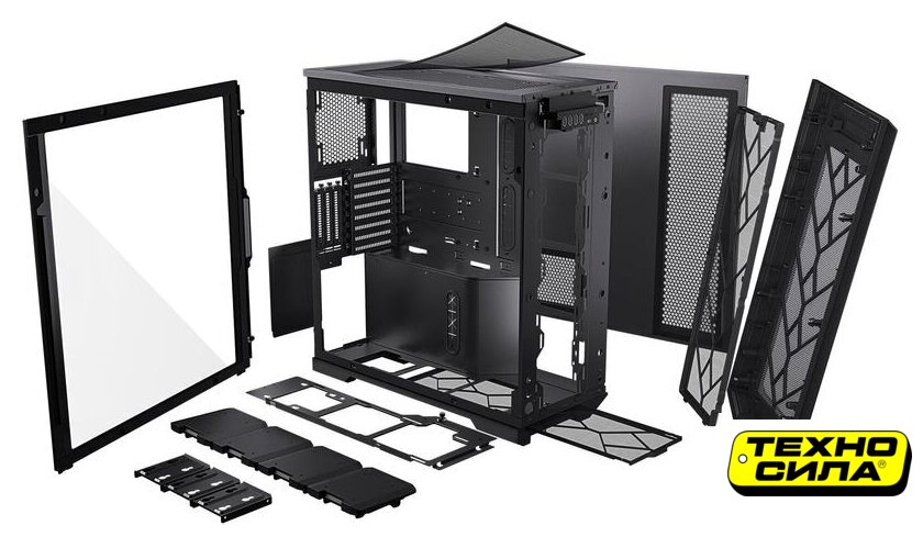 Mid Tower, БП отсутствует, для плат ATX/micro-ATX/mini-ITX, в комплекте 6 вентиляторов с контроллером вращения, окно: закаленное стекло, видеокарта до 420 мм, охлаждение ЦП до 175 мм, пылевые фильтры, 2xUSB-A 3.2 5Гбит/с, 1xUSB-C 3.2 5Гбит/с, цвет черный