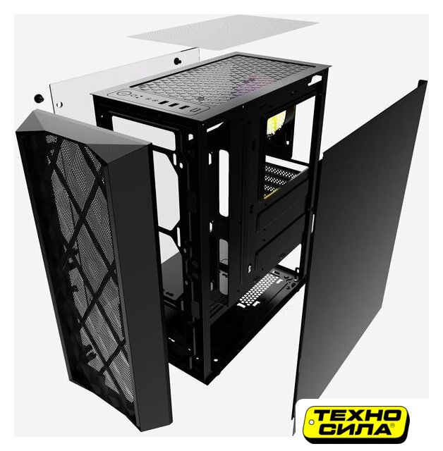 Mid Tower, БП отсутствует, для плат ATX/micro-ATX/mini-ITX, в комплекте 3 вентилятора, окно: акрил, охлаждение ЦП до 160 мм, пылевые фильтры, 2xUSB 2.0, 1xUSB-A 3.2 5Гбит/с, цвет черный