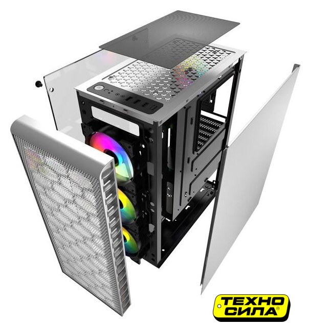 Mid Tower, блок питания отсутствует, для плат ATX/micro-ATX/mini-ITX, 4 вентилятора, 2xUSB 2.0, 1xUSB 3.0, окно: закаленное стекло, цвет корпуса черный