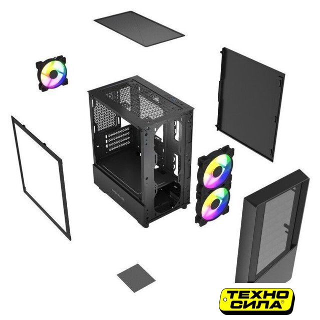 Mid Tower, БП отсутствует, для плат ATX/micro-ATX/mini-ITX, в комплекте 4 вентилятора, окно: закаленное стекло, видеокарта до 340 мм, охлаждение ЦП до 165 мм, пылевые фильтры, 2xUSB 2.0, 1xUSB-A 3.2 5Гбит/с, цвет черный