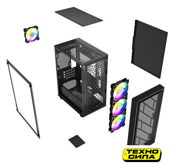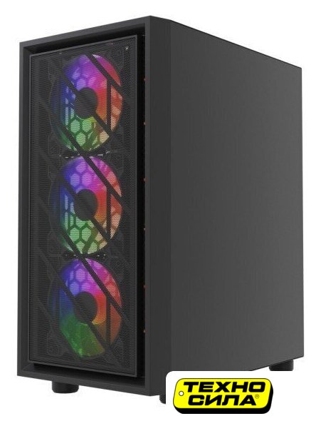 Mid Tower, БП отсутствует, для плат ATX/micro-ATX/mini-ITX, в комплекте 3 вентилятора, окно: акрил, видеокарта до 315 мм, охлаждение ЦП до 160 мм, 2xUSB 2.0, 1xUSB-A 3.2 5Гбит/с, цвет черный