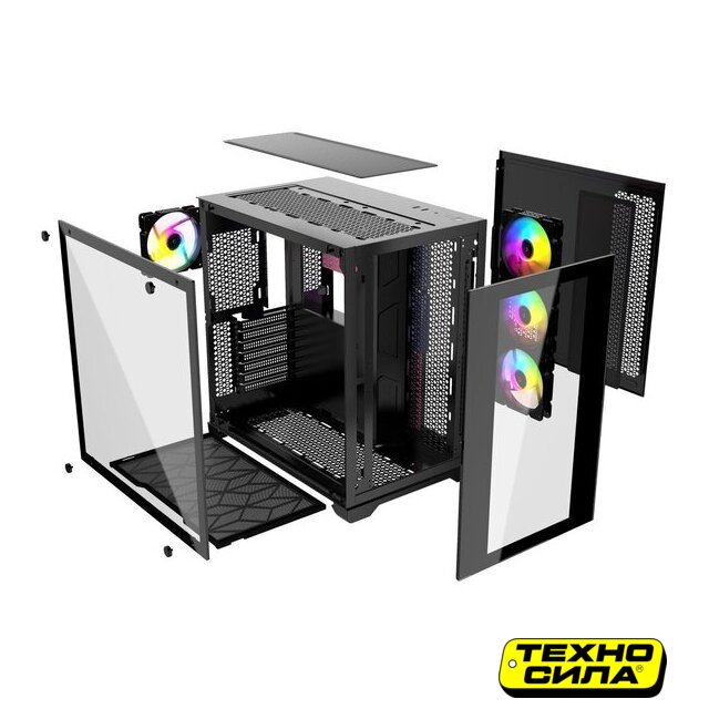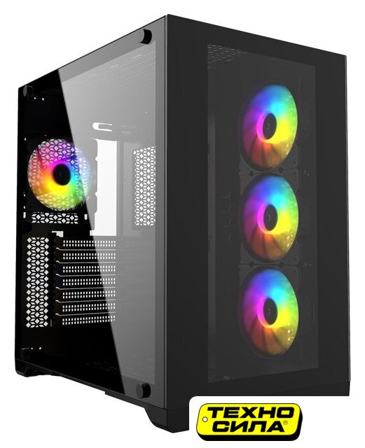Mid Tower, БП отсутствует, для плат ATX/micro-ATX/mini-ITX, в комплекте 3 вентилятора, окно: закаленное стекло, видеокарта до 392 мм, охлаждение ЦП до 180 мм, пылевые фильтры, 2xUSB-A 3.2 5Гбит/с, 1xUSB-C 3.2 10Гбит/с, цвет черный