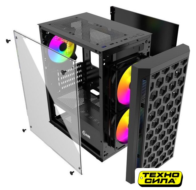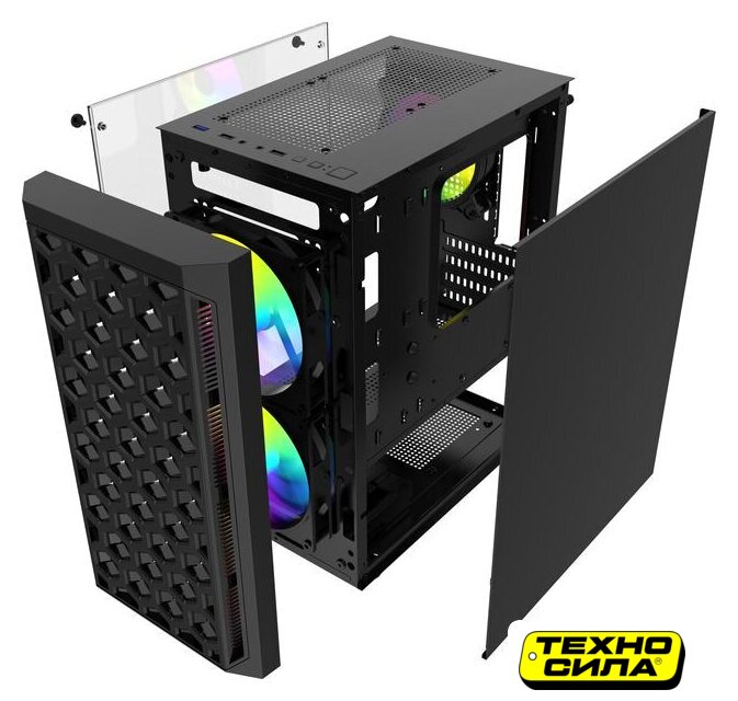 Mini Tower, БП отсутствует, для плат micro-ATX/mini-ITX, с 3 вентиляторами в комплекте, окно: закаленное стекло, видеокарта до 275 мм, охлаждение ЦП до 155 мм, пылевые фильтры, 2xUSB 2.0, 1xUSB-A 3.2 5Гбит/с, цвет черный