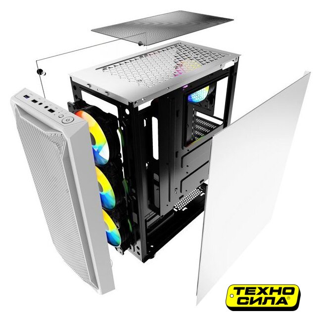 Mid Tower, БП отсутствует, для плат ATX/micro-ATX/mini-ITX, окно: акрил, видеокарта до 310 мм, охлаждение ЦП до 150 мм, пылевые фильтры, 1xUSB 2.0, 1xUSB-A 3.2 5Гбит/с, цвет белый