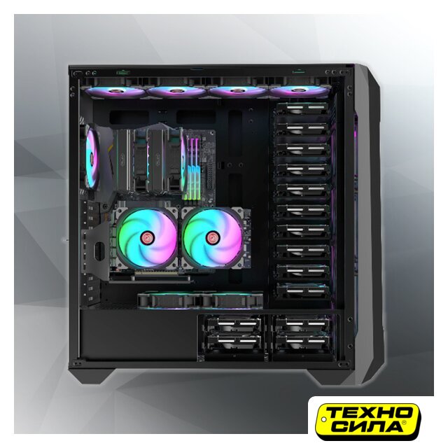 Full Tower, БП отсутствует, для плат ATX/micro-ATX/mini-ITX/eATX, с 5 вентиляторами в комплекте, окно: закаленное стекло, видеокарта до 482 мм, охлаждение ЦП до 171 мм, пылевые фильтры, 2xUSB-A 3.2 5Гбит/с, 1xUSB-C 3.2 10Гбит/с, цвет черный