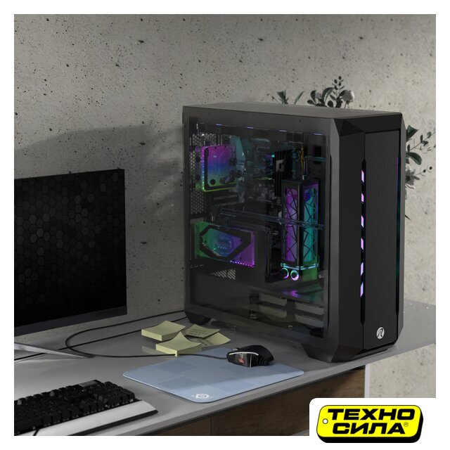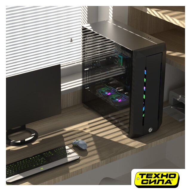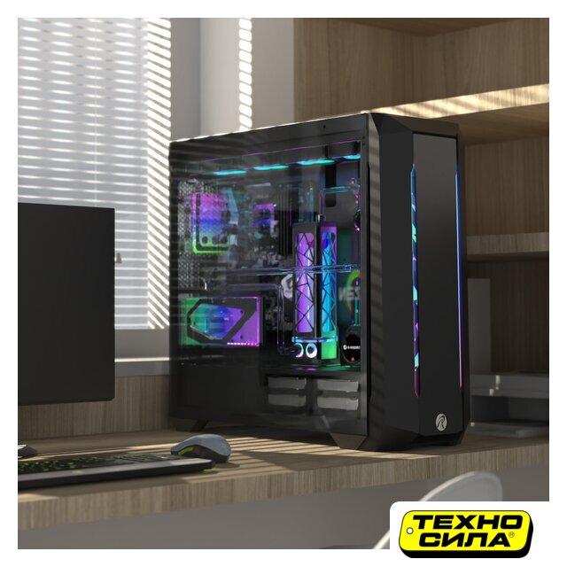 Mid Tower, блок питания отсутствует, для плат ATX/micro-ATX/mini-ITX, 3 вентилятора, 2xUSB 3.0, цвет черный