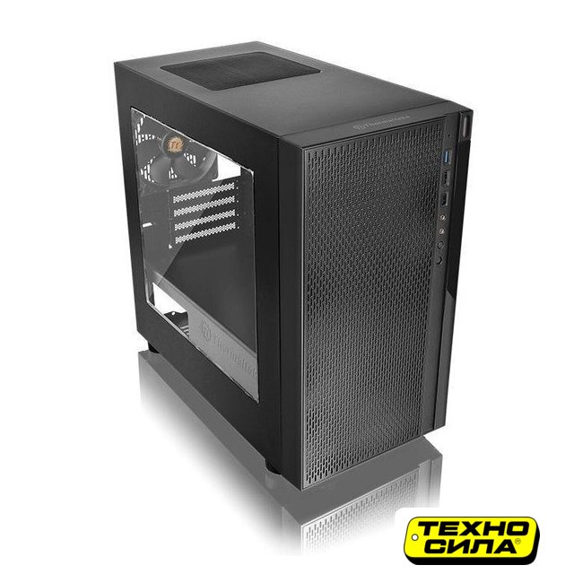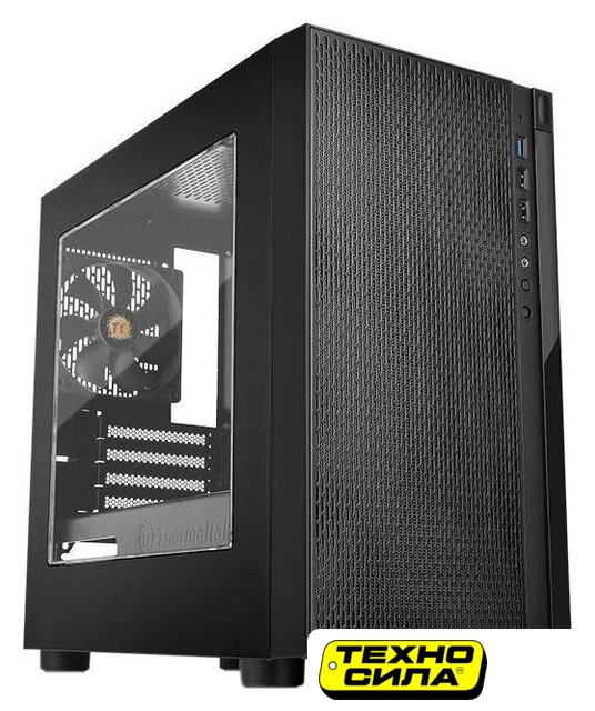 вертикальный настольный, БП 120 Вт, в комплекте 1 вентилятор, видеокарта до 220 мм, охлаждение ЦП до 50 мм, 2xUSB-A 3.2 5Гбит/с, цвет черный