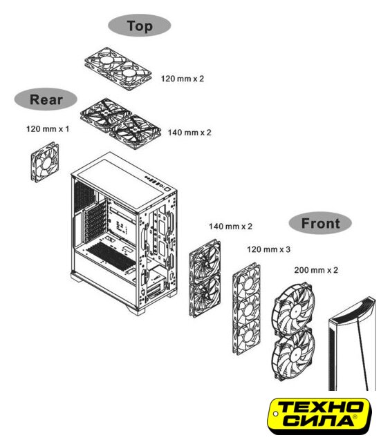 Mini Tower, блок питания отсутствует, для плат micro-ATX/mini-ITX, 4 вентилятора с контроллером вращения, 2xUSB 2.0, 1xUSB 3.0, цвет черный