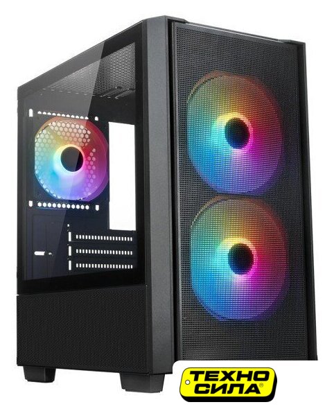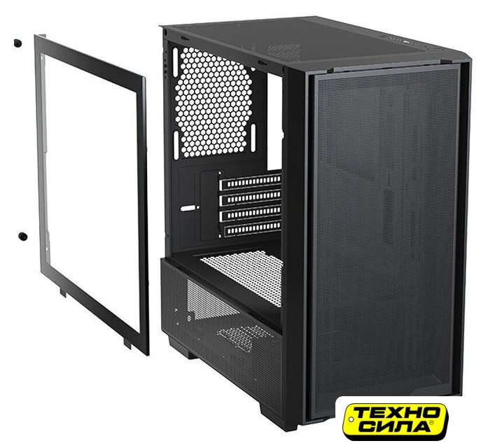 аквариум/Mid Tower, БП отсутствует, для плат ATX/micro-ATX/mini-ITX, окно: закаленное стекло, видеокарта до 400 мм, охлаждение ЦП до 168 мм, пылевые фильтры, 2xUSB 2.0, 1xUSB-A 3.2 5Гбит/с, цвет черный